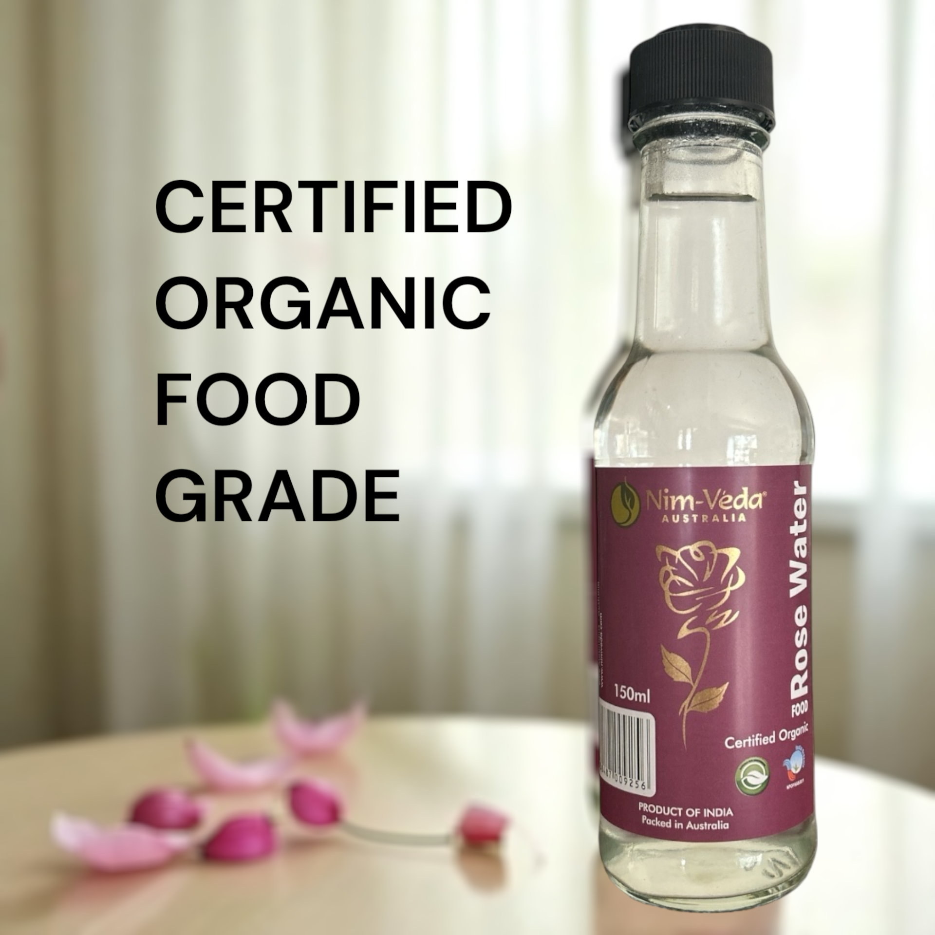 Nim-Véda Australia Certified Organic Food Grade Rose Water -150 mls